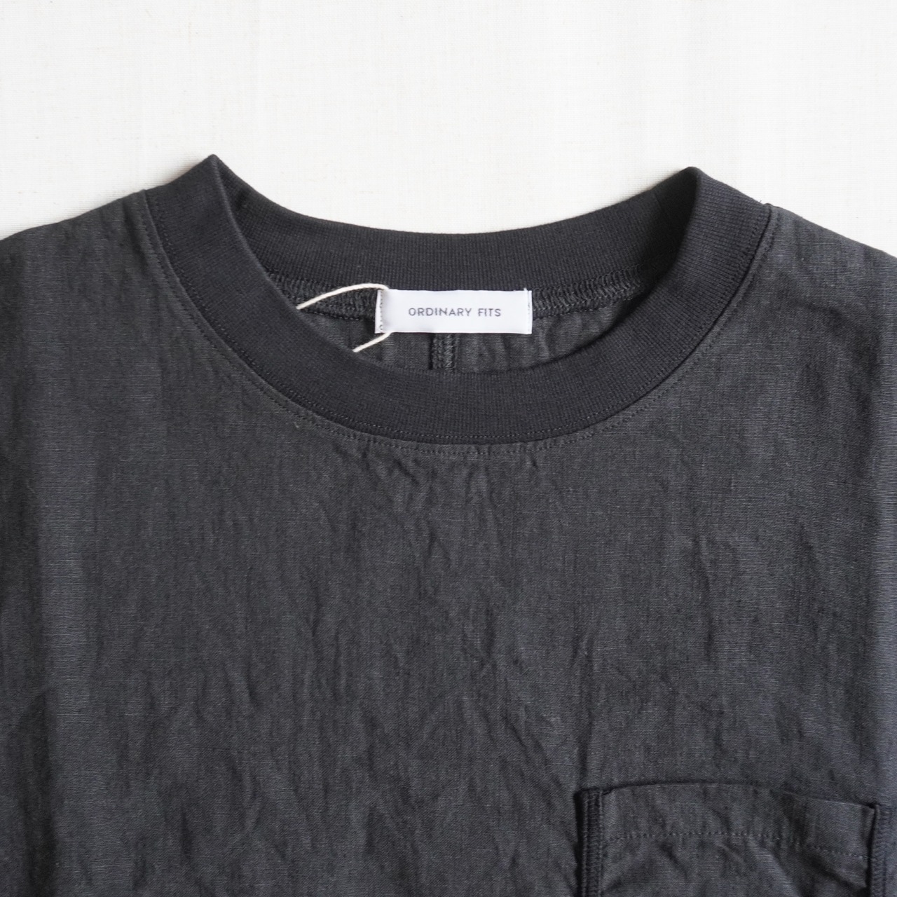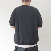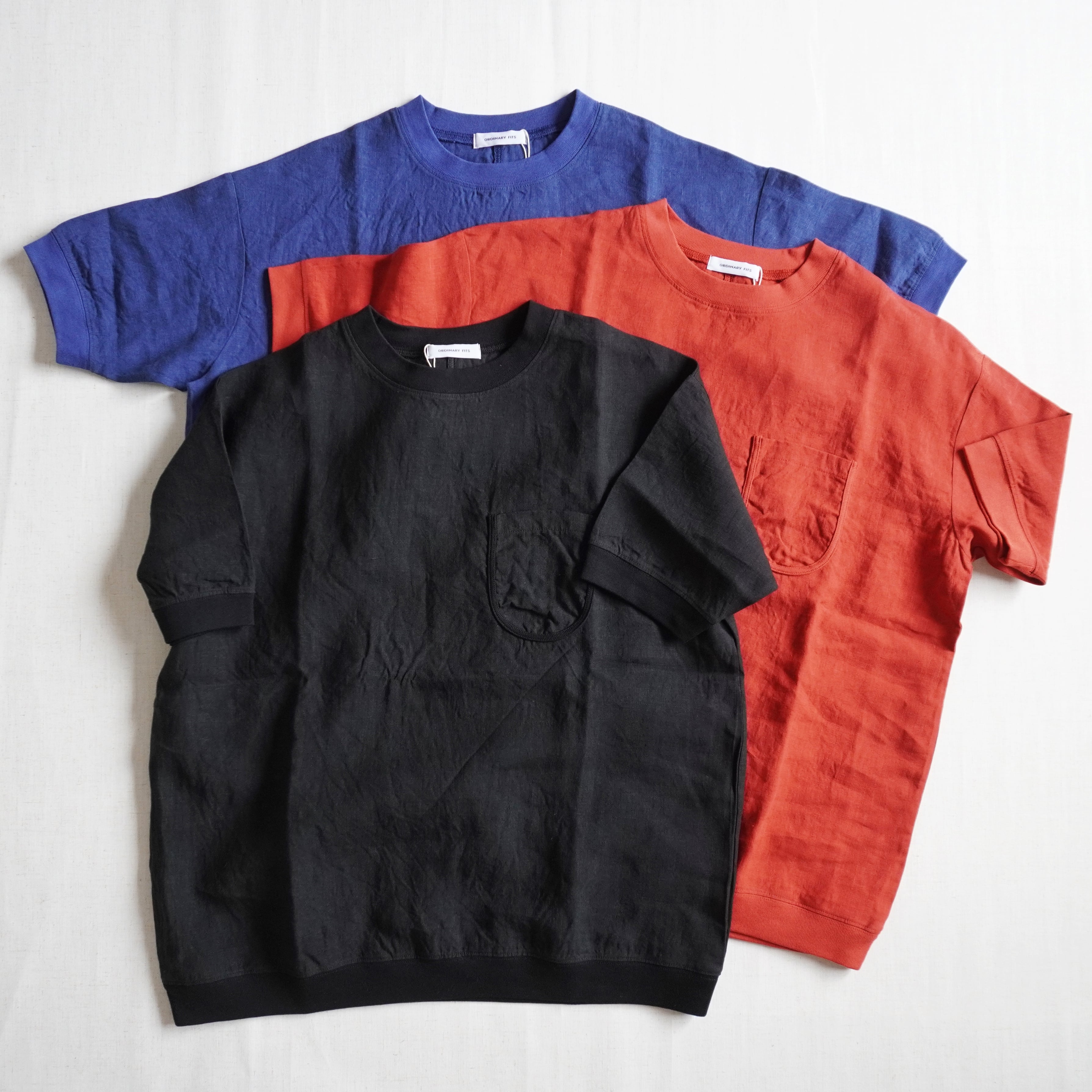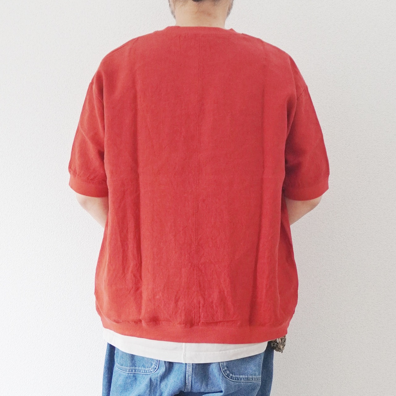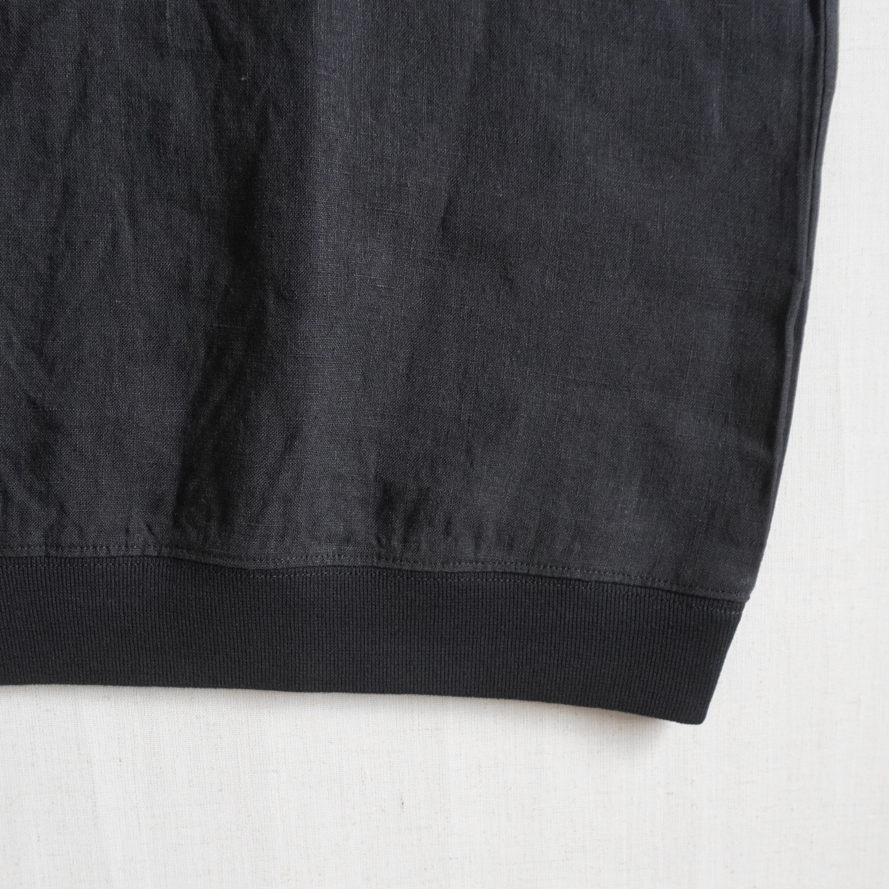 同じリネン生地を編み方とカラーを変えて切り替え、