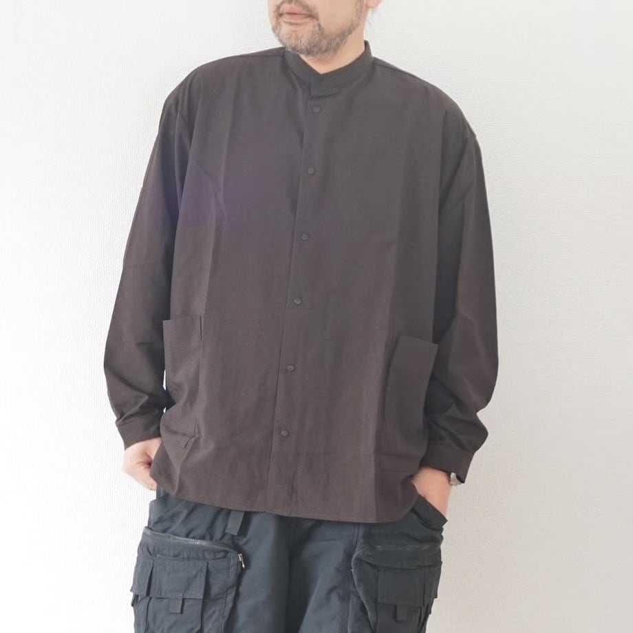 ☑️ スタンドカラーとマットな質感で、上品さも兼ね備えた一枚