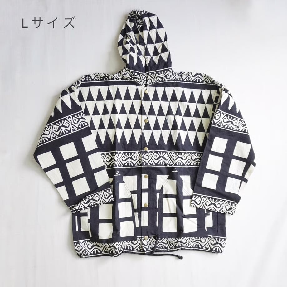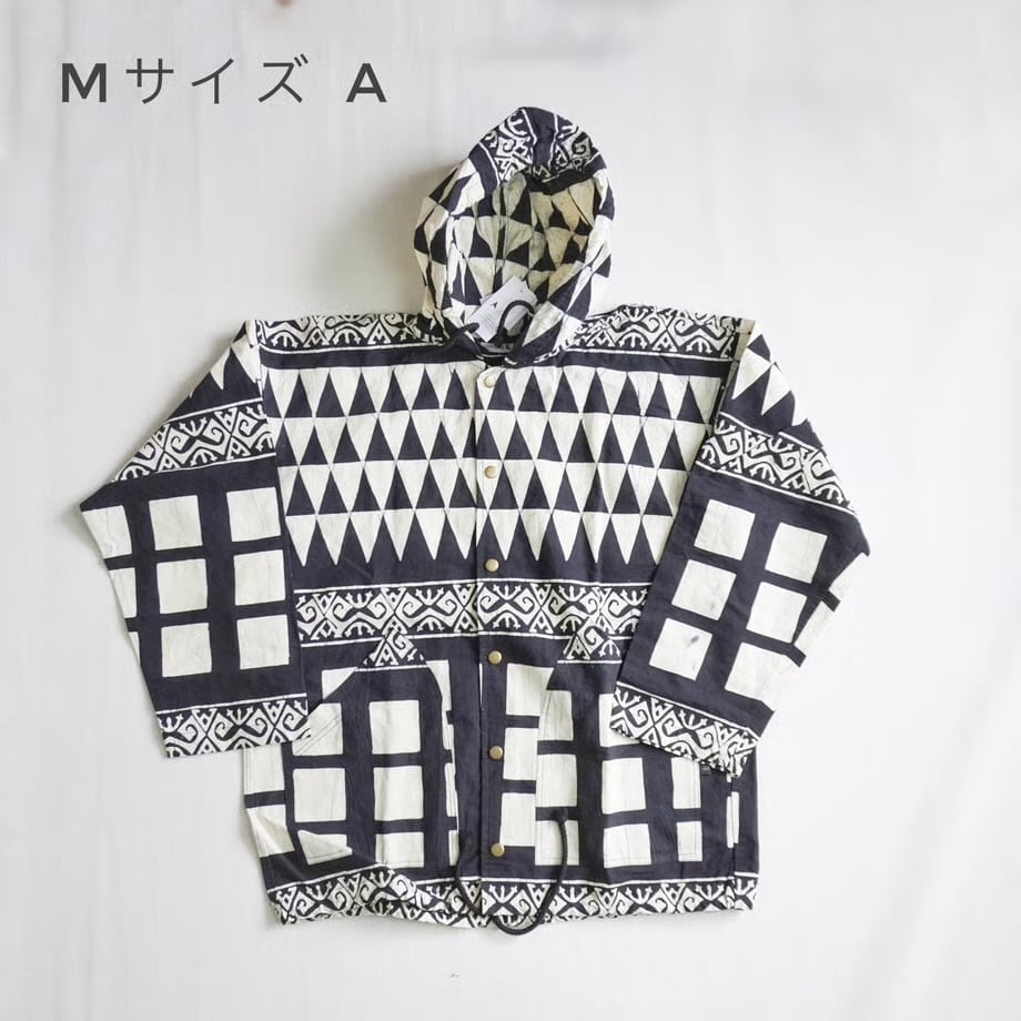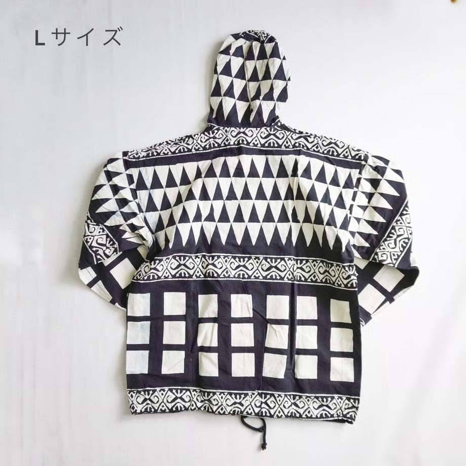 Jawandi-ジャワンディー-Sanp Button Hoodie Jacket/スナップボタン フーディジャケット/ブラックホワイト・インドネシアバティック | Rabbit Hutch second place