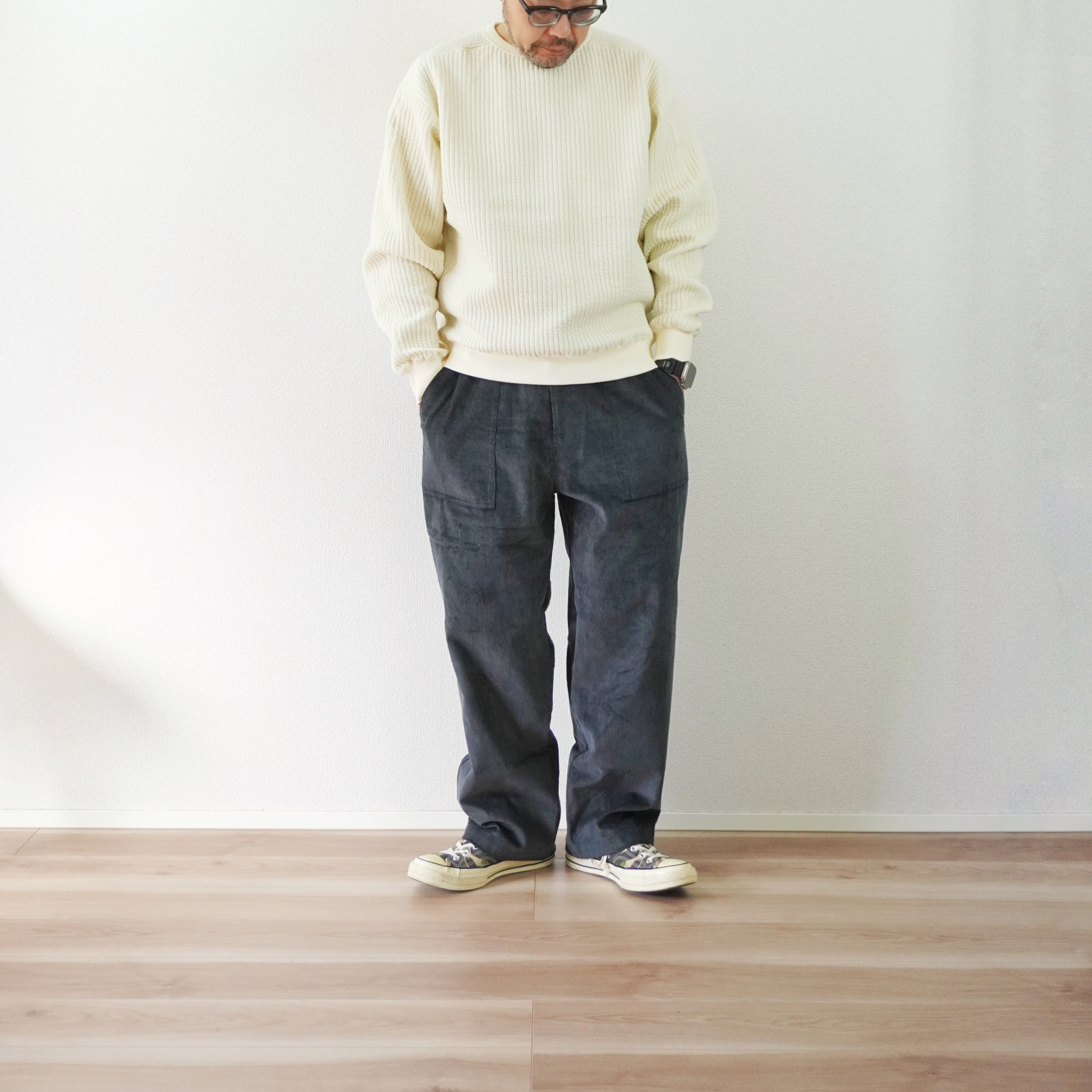 #Audience #オーディエンス #コーデュロイパンツ #ワイドパンツ #イージーパンツ #ユニセックス #日本製 #大人カジュアル #リラックスコーデ #尾州生地 #40代ファッション #50代ファッション #会津 #会津若松